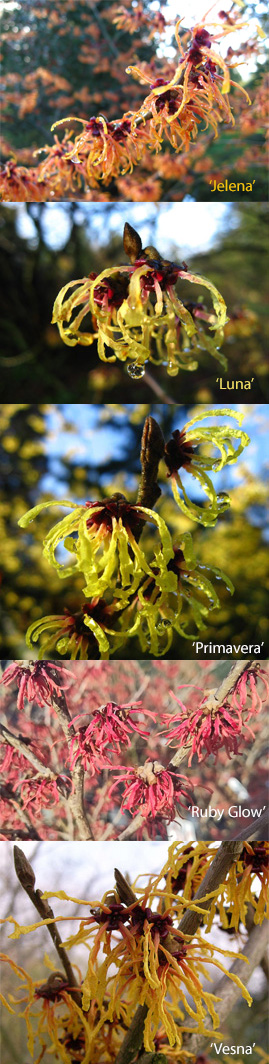 - ‘Jelena’ - En janvier 1955, Robert emporta à Londres trois branches fleuries d’un des hamamélis pour une exposition de la Royal Horticultural Society. Cet arbuste, encore inconnu en Angleterre à cette époque, fut très apprécié. Ce nouveau venu remporta un Award of Merit ainsi qu’un First Class Certificate de la RHS et fut baptisé ‘Jelena’.